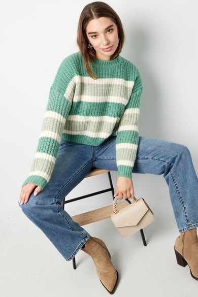 Cerchi il maglione caldo a righe perfetto per l'autunno e l'inverno? Allora questo è l'articolo per il tuo negozio! Combina questo maglione con i nostri pantaloni o pantaloni in pelle e il tuo cliente è pronto a partire. Il maglione è composto da 45% acrilico, 30% poliestere e 25% nylon. E la cosa bella è: il maglione è disponibile in diversi colori.
